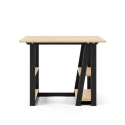 This simplistic yet effective wooden office desk is a perfect addition to any home. Featuring a plethora of storage coves and two removable drawers this desk is a stylish addition to any office environment.