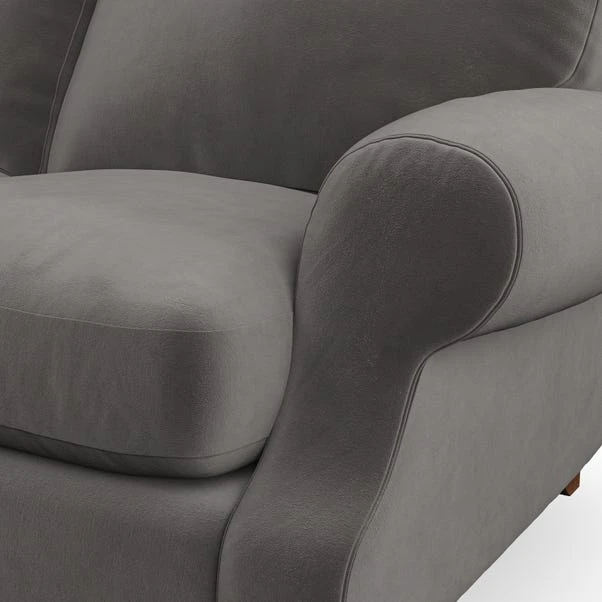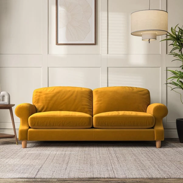 This sofa features a cut back scroll arm and elegant, gently arched back cushions, providing both style and comfort. The top-stitched detail on the arm front adds a touch of sophistication. Higher back cushions with generous fibre filling offer excellent support for your back and shoulders. Customise your comfort by choosing between a low-maintenance foam seat or the inviting ‘Qualofill Blue’ fibre seat, made from 100% recycled polyester. Built for longevity, it includes serpentine seat springs for added comfort. The turned hardwood legs, available in two finishes, are easy to fit.