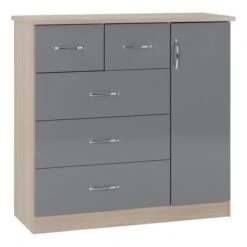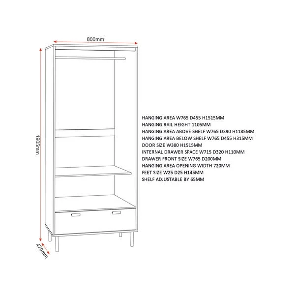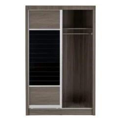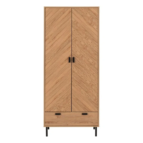 This stylish wardrobe combines form and function, offering ample storage for your clothing and accessories. Behind its sleek doors, you’ll find generous hanging space to keep your garments neatly organised and wrinkle-free. The two spacious drawers at the bottom provide additional storage for folded clothes, shoes, or other essentials.
