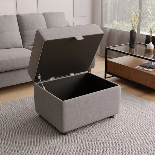 The Baxter Textured Weave Storage Footstool is both a stylish and practical addition to any home. Featuring a foam with fibre-wrap cushion, sturdy wood frame, and modern minimal legs, this footstool is both a comfortable additional seating for guests and place to put your feet up after a long day. This footstool opens up to offers ample storage space, perfect for keeping your spare blankets or remotes.