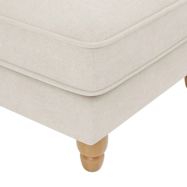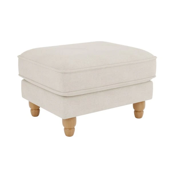 Boasting a modern take on a vintage design, the Beatrice footstool would bring a touch of timeless style to your home, crafted from a soft touch, polyester fabric in a choice of colours. The foam and fibre filled cushion offers luxurious comfort, making this footstool the perfect place to put your feet up, whilst the piped edge detailing and turned, natural finished rubberwood legs complete the stylish look.