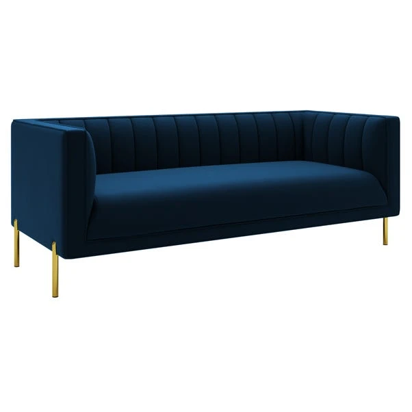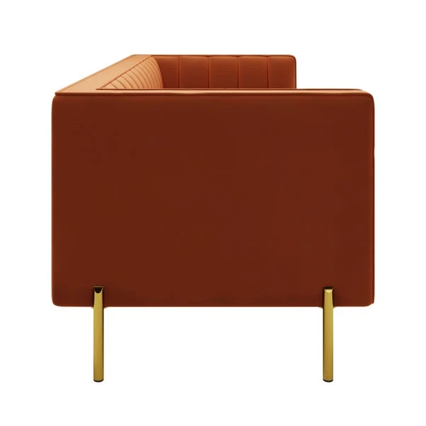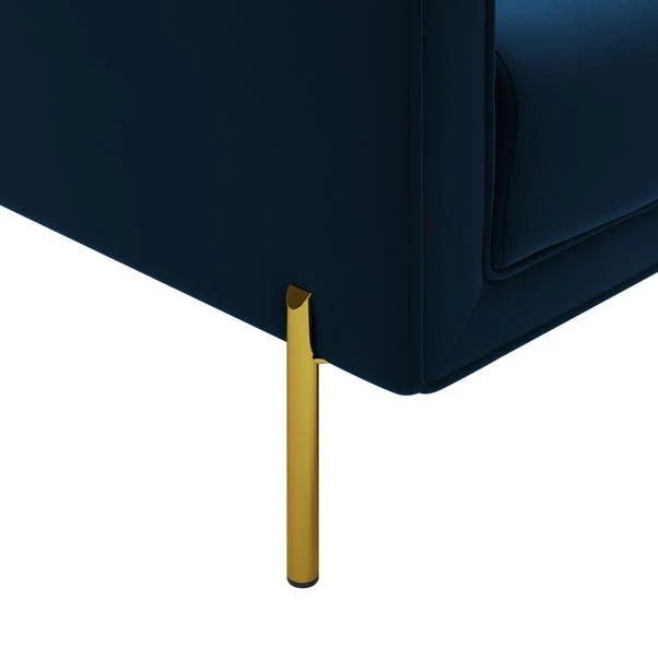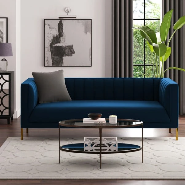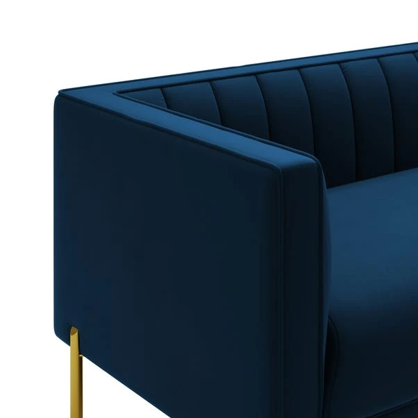 Modern and sophisticated, the Bellamy 3 seater sofa features bold lines and elegant details, making it the ideal addition to any modern living space. This sofa is upholstered in a beautiful soft touch velvet fabric, available in a range of stunning shades to suit your space. The pleated back and armrests coupled with the subtle piped edge detail and metal legs makes this sofa stand out from the rest, making it the perfect statement piece for your living room. This sofa is as luxuriously comfortable as it is stylish, complete with deep padded foam seats and backrest for ultimate comfort and support.