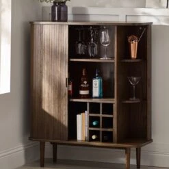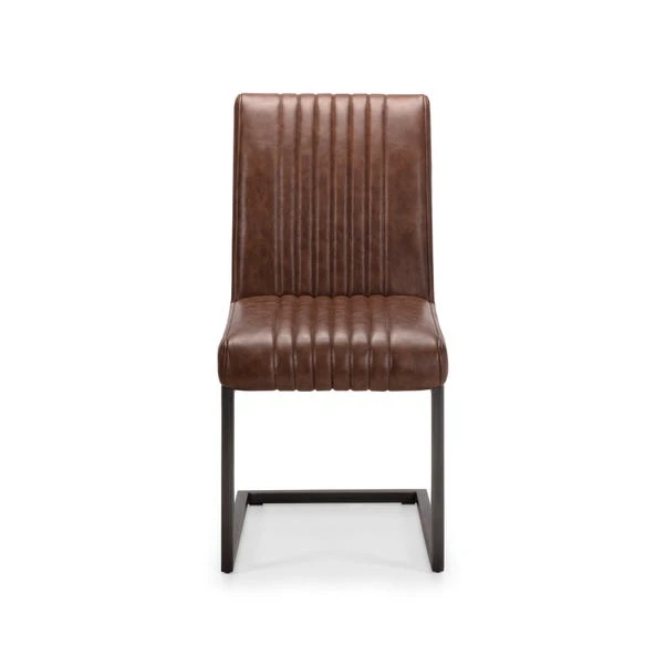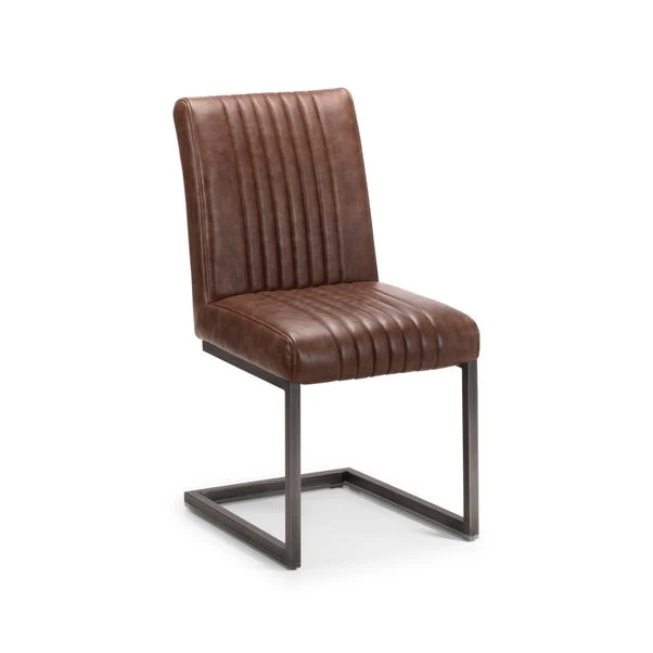 Offering a modern, industrial-chic style, the Brooklyn dining set would be a stunning addition to any dining space. The self-assembly dining table is crafted with a solid oak top and sturdy, trapeze-style brushed metal legs. The set comes complete with six matching cantilever dining chairs upholstered in a brown faux leather with comfortable foam-filled seats.