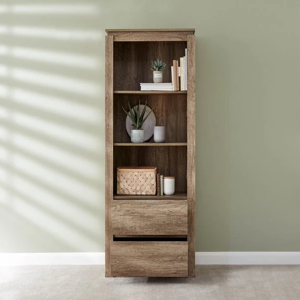 The Canyon Oak Bookcase will be a great addition to your home. Made from wood with a textured oak finish, this sturdy piece with freshen up the look of your living room. Offering plenty of storage with three deep shelves and two lower drawers, this item will compliment the rest of the Canyon Oak range.