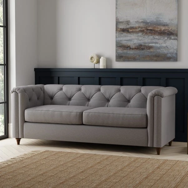 While it’s hard to keep your eyes off the mesmerizing detailing, it’s easy to see what makes this Chesterfield 3-seater sofa so special. This stylish sofa is a modern take on the classic chesterfield design. Featuring soft texture upholstery, detailed button details, and sturdy wooden feet, this sofa will be a great addition to your home.