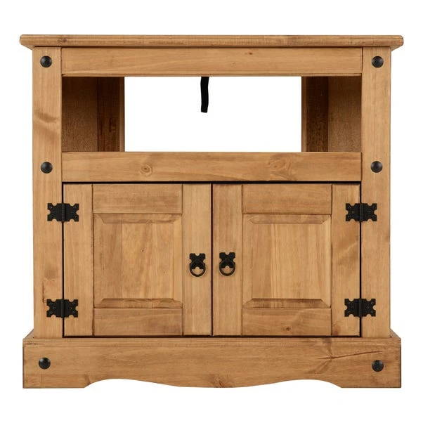 Bring a sense of traditional, country style to your living room with the Corona Corner TV Unit, which features a lovely Mexican-inspired build. It will happily house your TV and DVD player and also has a cupboard section so you can store your DVDs. Designed with a space saving, practical shape, this unit will fit neatly in the corner of a room.