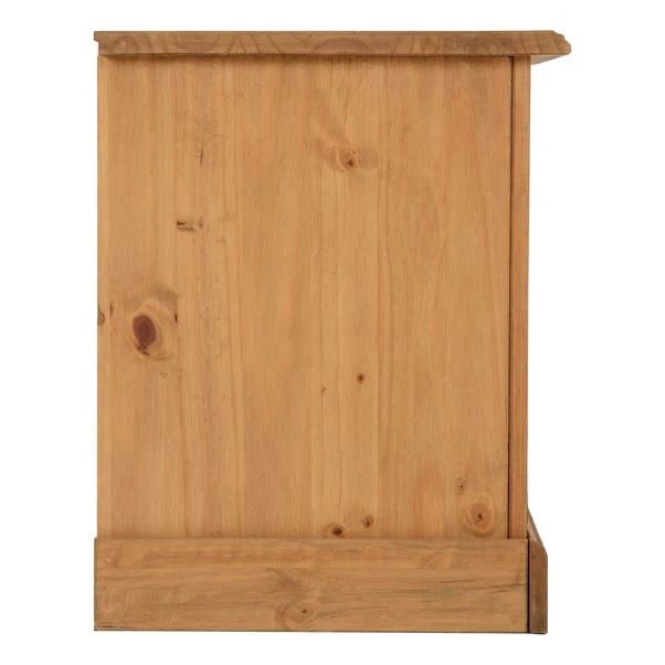 Featuring a stylish distressed wax finish and iron-effect handles and hinges, this self-assembly TV stand is crafted from hardwood and veneered with an oak-effect.