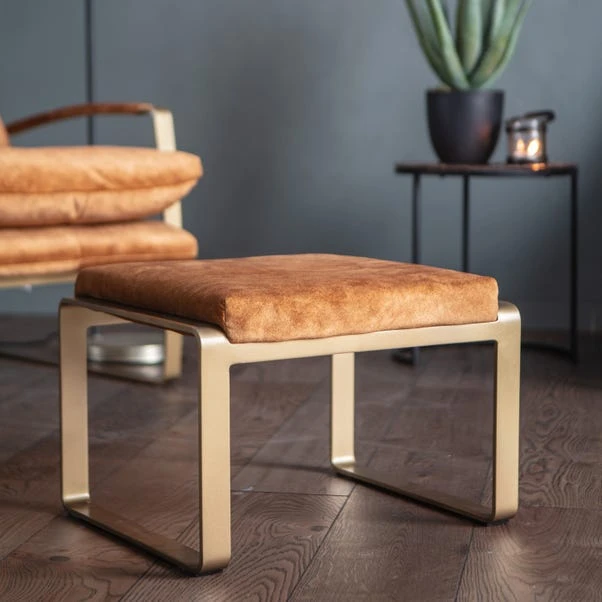 The Cosette Footstool, part of the Cedar & Sage collection, is the perfect companion to the Cosette Lounger Chair. Its curved gold-toned metal legs and upholstered cushioned top exude sleek modernity, while the soft mineral-toned finish ensures timeless appeal. Whether used as a standalone piece or paired with the matching chair, this footstool brings understated elegance and comfort to your living space.