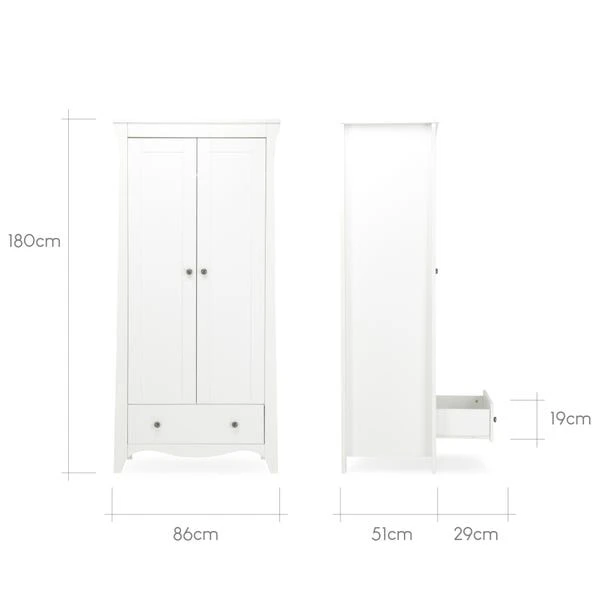 CuddleCo are here to make your nursery a space to store all your little one’s bits and bobs. This gorgeous wardrobe is expertly crafted to keep your nursery beautifully organised. Featuring 2 removable hanging rails that can easily convert into a full-size wardrobe, it also features a deep storage drawer and a convenient shelving space – perfect for all your little one’s essentials. Rest assured, this wardrobe is thoughtfully designed to endure and provide lasting functionality