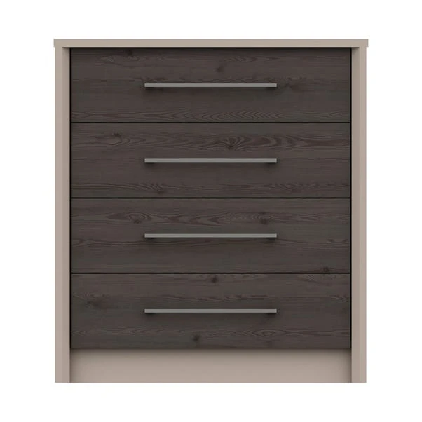 Crafted with a coloured carcass with complementing oak effect drawer fronts, the Dolan 4 Chest of Drawers would make a stylish addition to any bedroom. This modern chest of drawers features five spacious drawers complete with stylish brushed pewter finished slim handles, linen-look drawer insides, 8mm heavy duty bases and easy glide runners for ease of use.