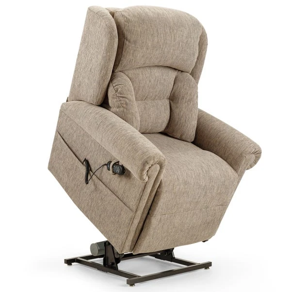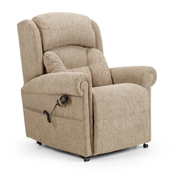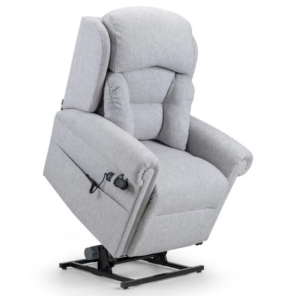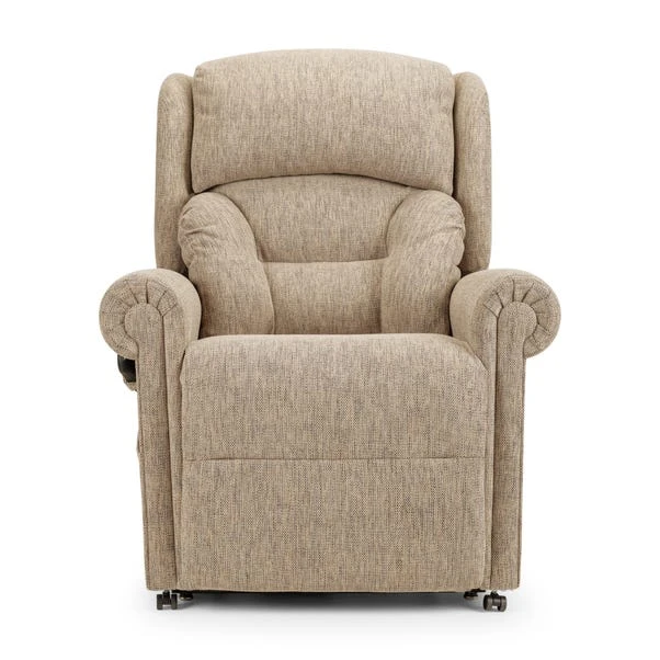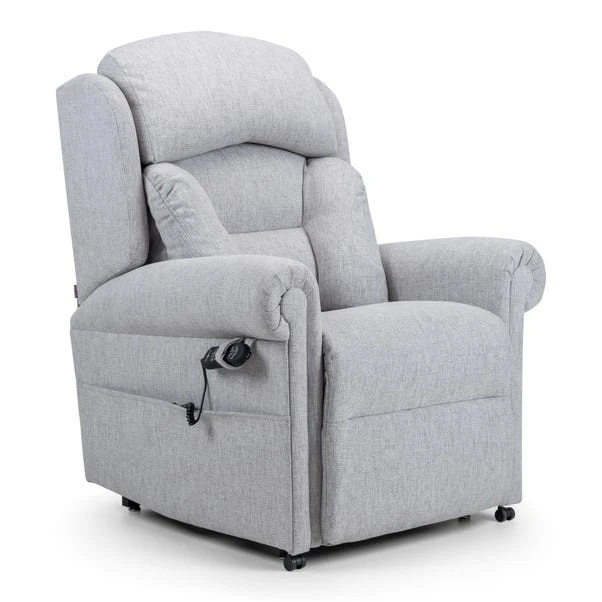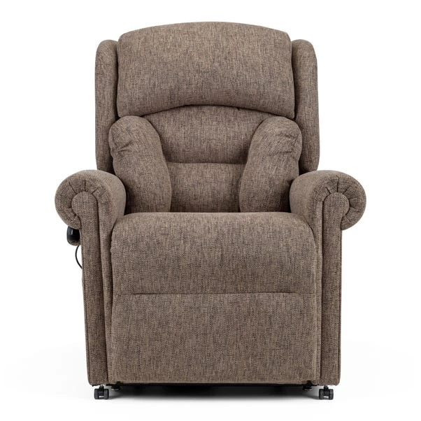 The Dorchester Premier Lateral Lift and Recline Chair features a Lateral Back with independent backrest and legrest operation, along with a unique Powered headrest and lumbar adjustment. Lift and recline in timeless comfort with classic scroll arms, a 158.7 kg weight capacity, USB charger, side pocket, and included arm caps and antimacassar. This chair is finished in a chenille fabric, available in a selection of timeless colours to suit your space.