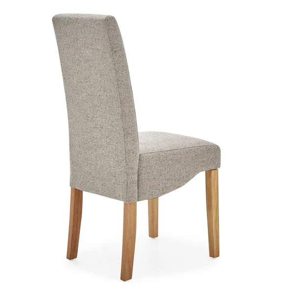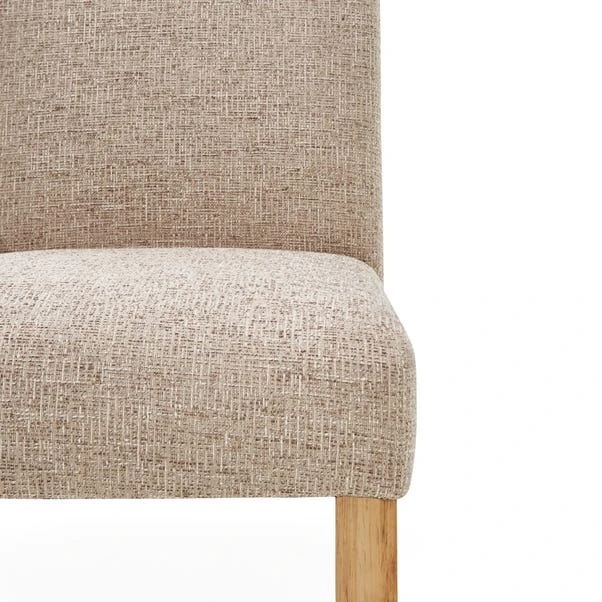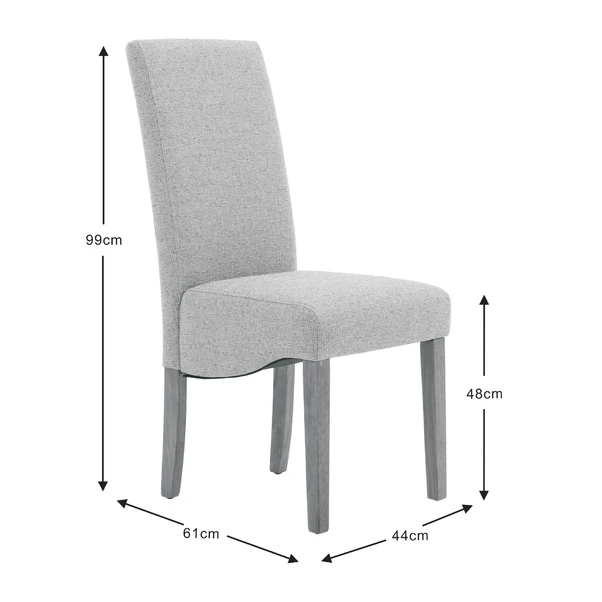 Offering a clean modern design, the Ethan set of two dining chairs are upholstered in a textured boucle fabric finished in a classic, stylish grey colourway. Complete with comfortable foam-filled seats and backrests, and tapered, oak effect solid wood legs, these easy to assemble chairs would make a great addition to any dining space.