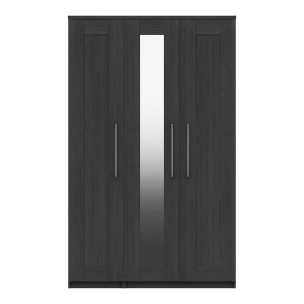 The stylish Ethan Triple Mirrored Wardrobe features profiled doors with shaker style metal handles. Including high quality components and multi-adjustable hinges this wardrobe isn’t just practical but features a beautifully designed wood grain effect in a choice of trendy finishes, perfect for almost any bedroom.