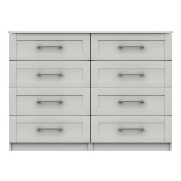 This stylish Chest of Drawers features profiled doors with shaker style metal handles. Including high quality components and multi-adjustable hinges this Ethan Chest of Drawers isn’t just practical but features a beautifully designed grain effect finish with a crisp coloured coat, perfect for almost any bedroom. Even the small details count as this product offers Easy Glide drawer runners and a premium linen wrap on the sides of the drawers.