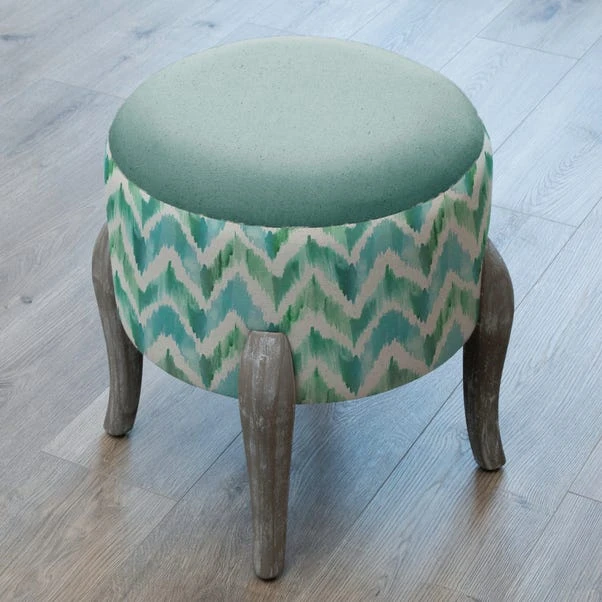 Curved wooden legs sporting a faded finish paired with the eclectic zigzag pattern featured on the upholstery, this charming footstool is where rustic and timeless design meets. Expertly crafted using durable, natural materials, not only is this piece charming to look at, but it also provides a wonderfully comfortable resting spot for your legs. Perfect for elevating your interior design, this piece adds a sense of earthy opulence to its surroundings.