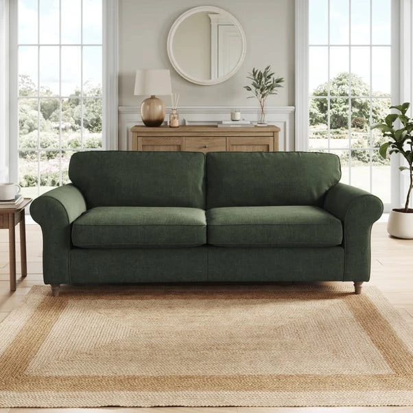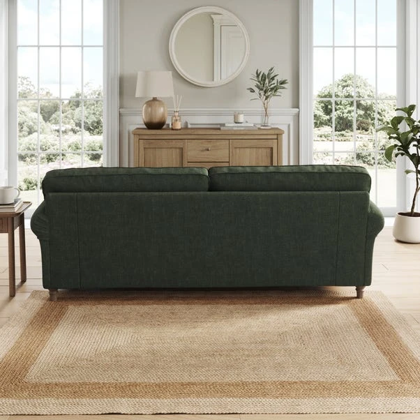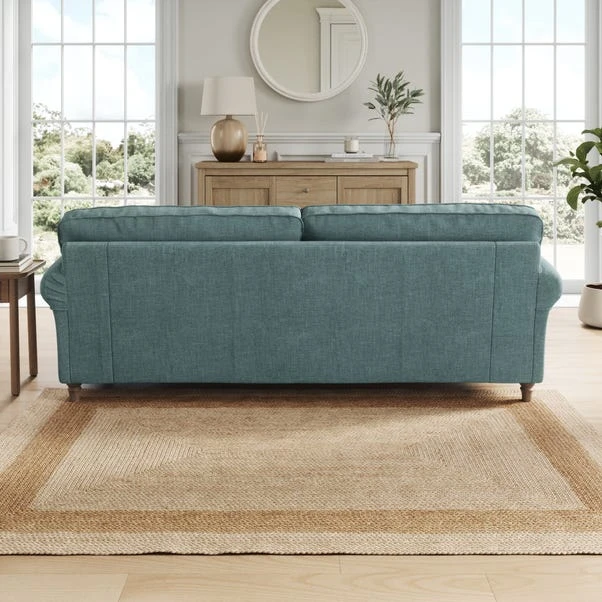 Featuring gracefully scrolled arms and elegantly turned wooden feet, this sofa embodies timeless style that effortlessly enhances any room. Available in a selection of colour palettes, the plush chenille upholstery is complemented by piped edge detailing for a refined finish. Enhanced with brand-new foam seat and back cushions, it ensures both comfort and durability.