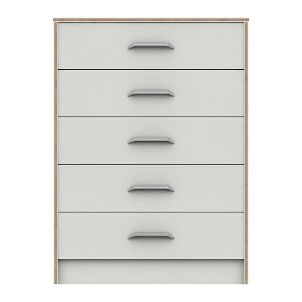 The Florine 5 Drawer Chest would make a stunning addition to any modern bedroom and is supplied fully assembled for added convenience. This high quality chest of drawers features five spacious drawers, complete with with 8mm heavy duty bases, easy glide runners and angled cup handles.