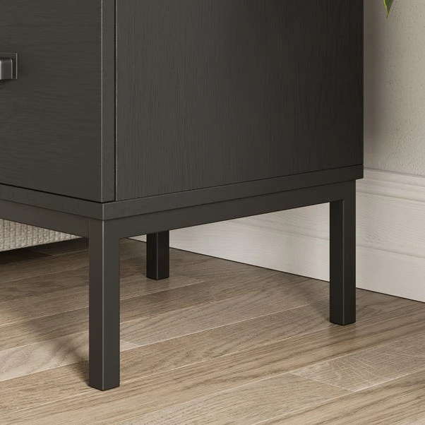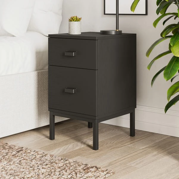 With a practical, slim-line design that’s a perfect fit for smaller bedrooms, we love this versatile little Fulton Slim Bedside with its oak effect finish and useful drawers. The black metal legs and handles add an industrial-inspired vibe to this piece for an edgy feel that’s timeless and pairs perfectly with a myriad of interior styles. This versatile piece can be added to any room in the home to make use of tight spaces while making it easy to reach for any bits and bobs you wish to keep nearby.