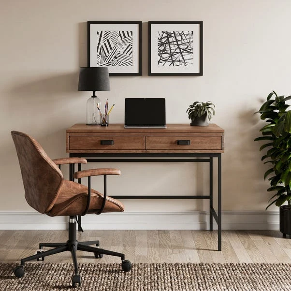 Exclusively designed by Dunelm, this desk offers a lift-up tabletop with hidden storage, providing a clever way to keep your workspace tidy and organised. The adjustable working heights cater to a range of tasks, whether you’re working, drawing, or crafting. With two spacious drawers and a pine-effect finish, this desk blends rustic charm with modern practicality.