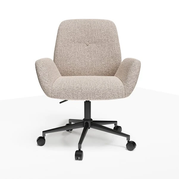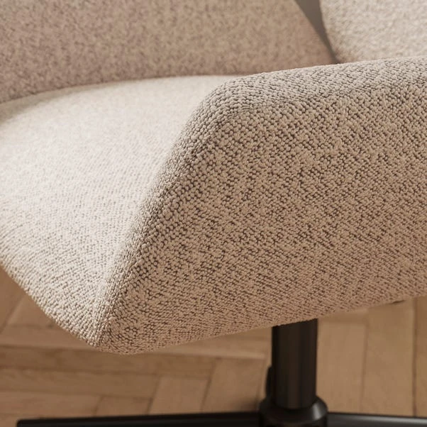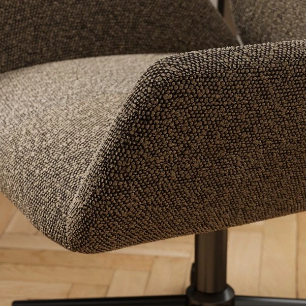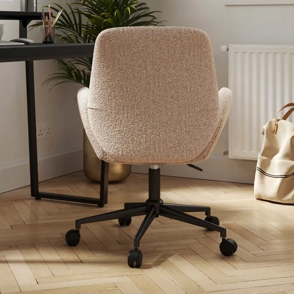 This office chair’s boucle upholstery in a choice of colours adds a touch of sophistication, while the ergonomic design ensures optimum support during long working hours. The swivel feature and adjustable height add practicality, making it a versatile and stylish choice for any home office.