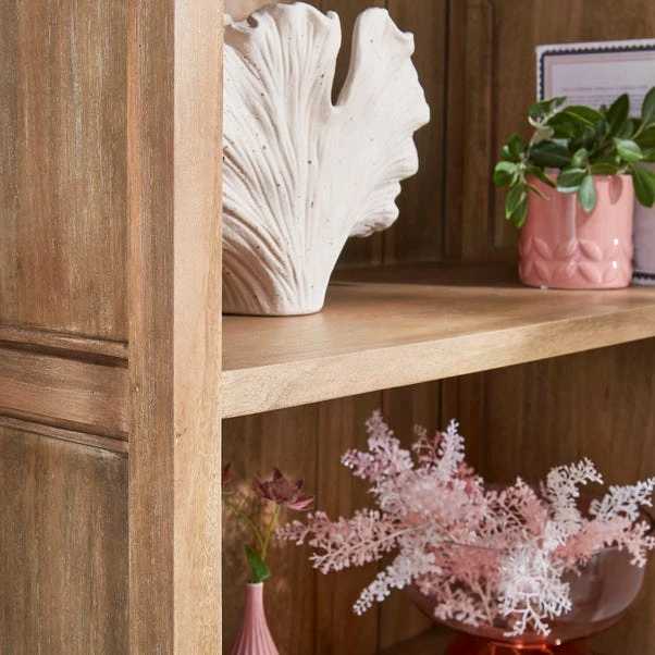 Crafted from exquisite mango wood with a light wood finish, this shelving unit becomes a showcase of your treasures. Its tall design allows for a generous amount of shelf space, providing you with a canvas to exhibit your favourite books, decor items, or personal collections. The wood’s grain and finish add a touch of natural elegance to your interior, creating an inviting atmosphere.