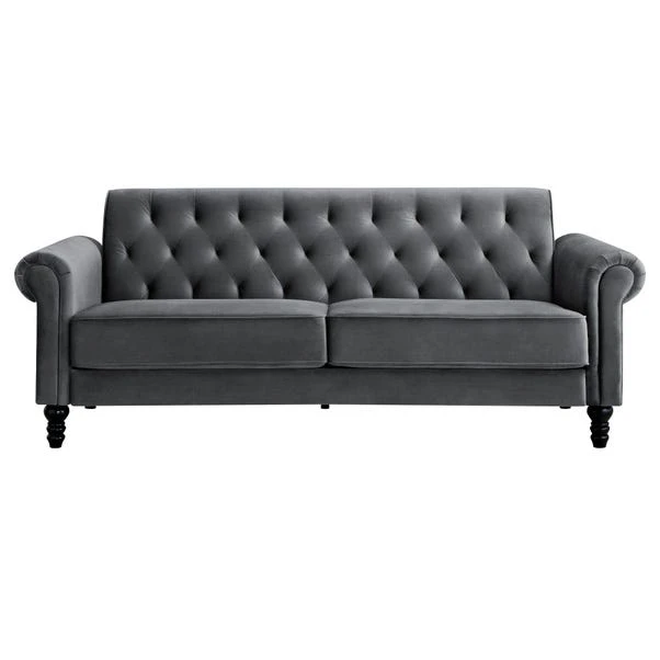Designed for lasting comfort and durability, the Greta sofa features extra-thick seat cushion padding, providing superior support compared to standard designs. A combination of coil springs and plush foam layers ensures a truly relaxing seating experience. Built with a reinforced steel and wood frame, this sofa offers outstanding stability and longevity. The dark, antique-style solid wooden legs add a timeless touch, brings a sense of luxury with its smooth and plush surface. The rich velvet texture enhances the sofa’s refined look while remaining soft and comfortable to the touch. The removable seat cushions make everyday use more convenient, and the easy-to-clean surface keeps maintenance hassle-free.