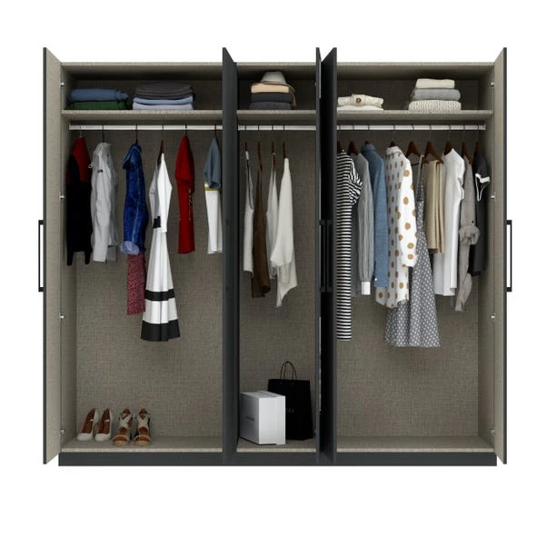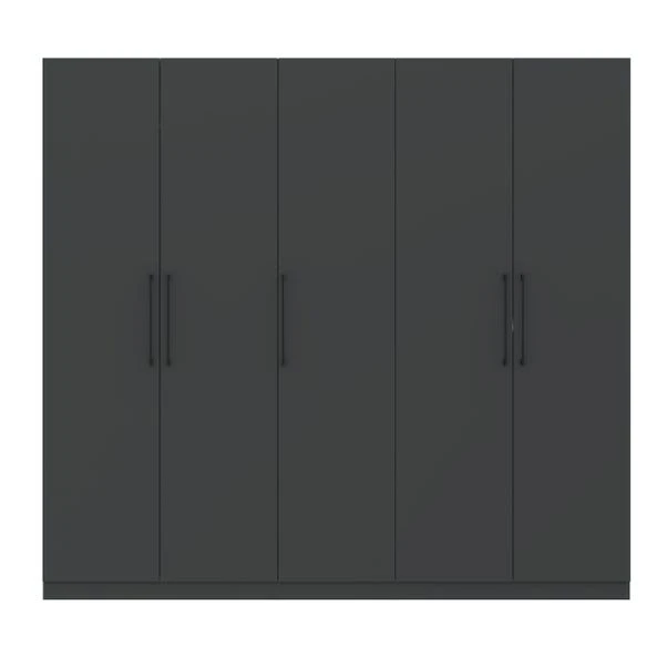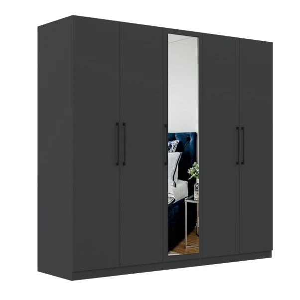Spacious storage and contemporary style – the Foster 5 door wardrobe is an extra-large storage solution that doesn’t compromise on looks. With adjustable shelves and hanging rails, the space can be adapted to suit your needs. Modern, effortless style is achieved with sleek metal bar handles and a choice of oak effect or dark grey anthracite finishes and options for no mirrors/mirrored doors. The ideal storage companion for modern life.