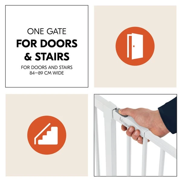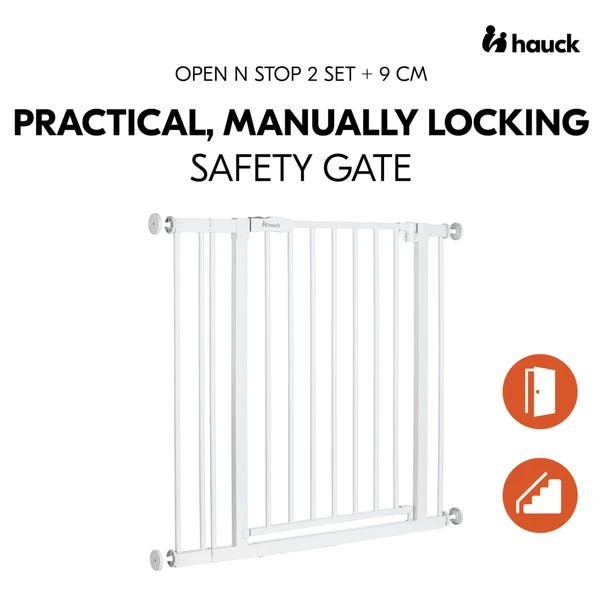 Keep your little ones safe with the Hauck Open N Stop Stair Gate, a practical and reliable solution for securing doorways and staircases. Designed for effortless installation, this pressure-mounted gate requires no drilling, making it ideal for rental properties or temporary setups. The set includes a 9cm extension, allowing it to fit openings between 84 – 89 cm, with the option to expand further with additional extensions (sold separately). The one-handed opening mechanism ensures easy access for adults, while the dual locking system provides extra security. Built with a durable steel frame, this safety gate offers peace of mind while seamlessly blending into your home.