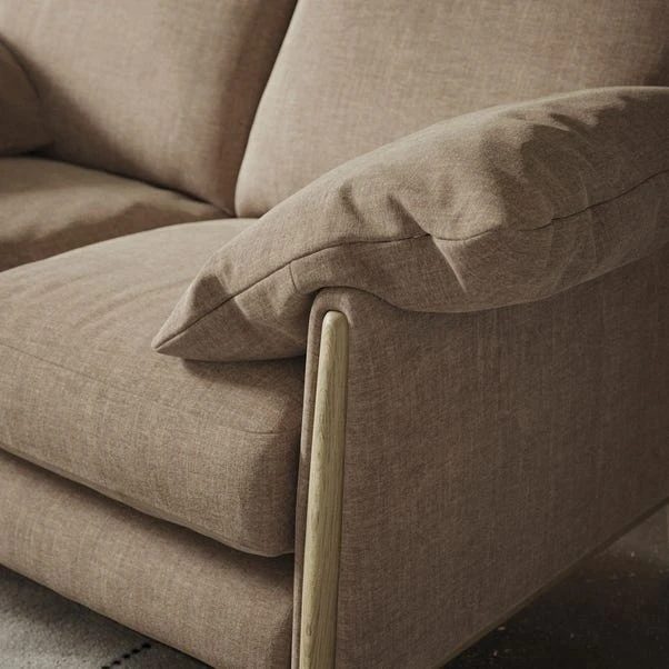 Upholstered in luxuriously soft chenille fabric, this sofa offers a tactile and comfortable seating experience, making it perfect for relaxing or entertaining guests. The feather-filled arm cushions provide an extra layer of comfort, ensuring you can sink into the sofa with ease. The wooden leg detail adds a touch of elegance to the design, making it a versatile piece that works well in a variety of interiors. As a made-to-order, bespoke sofa, it’s tailored to your personal style, providing a unique seating solution that enhances the charm of your living space.