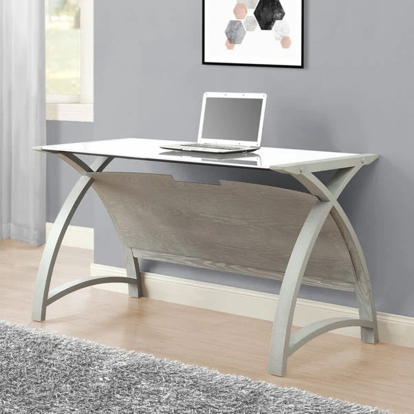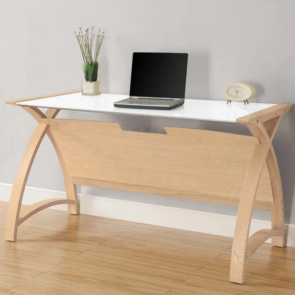 The Helsinki Wide Desk combines a real wood veneer finish with a unique curved design. With ample workspace and a supplied modesty panel, it is both stylish and functional.