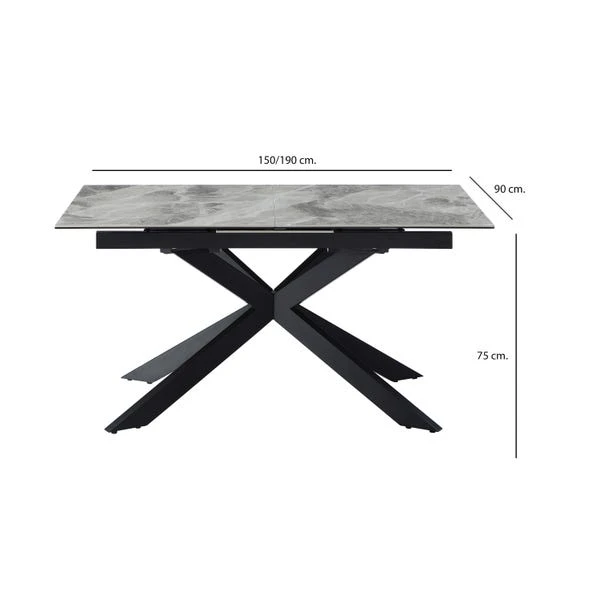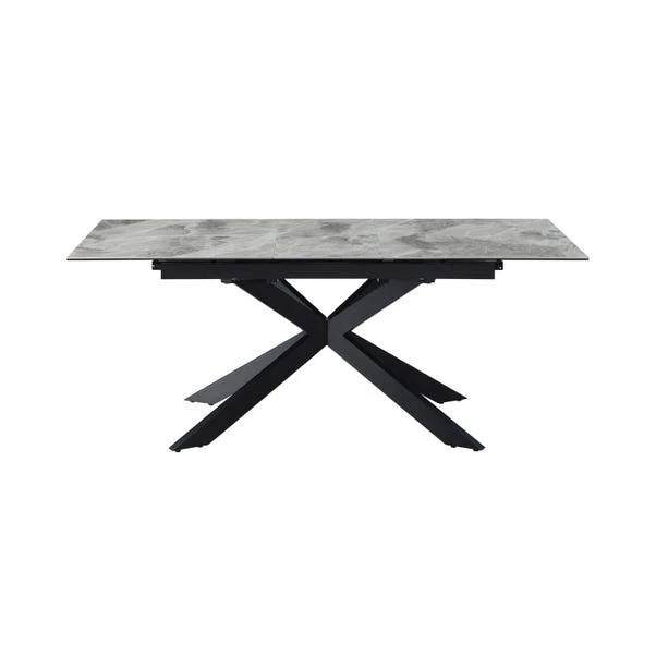 The Indus Valley Athena 6 Seater Extending Dining Table offers the best of both worlds with its grey ceramic effect finish and X design iron legs. This modern table can comfortably seat six and features a simple drop-in leaf mechanism, extending it from 150cm to 190cm. This provides additional seating space for special occasions or larger gatherings, all while maintaining a sleek and stylish aesthetic.