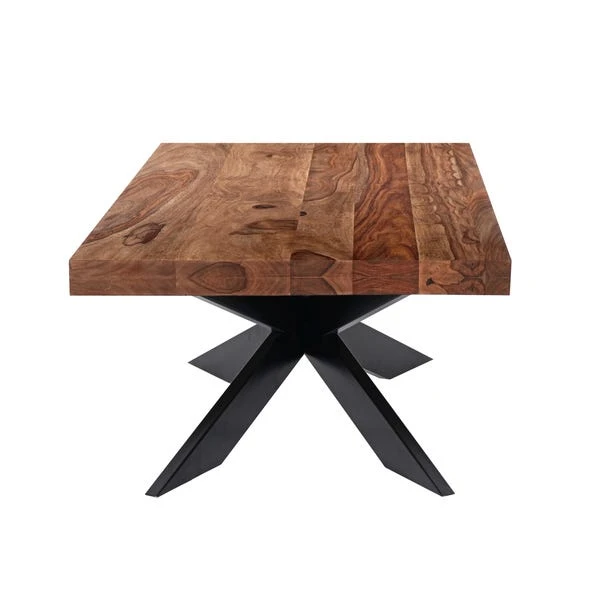 A fusion of rustic charm and industrial edge, the logan coffee table makes a striking focal point in any living room. Crafted from solid Sheesham wood, the natural grain adds warmth and depth, while the bold black metal X-frame legs introduce a contemporary contrast.