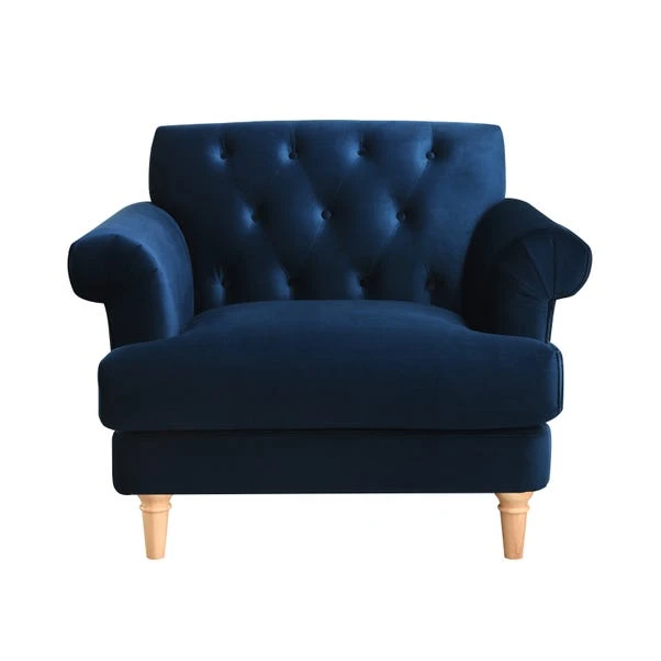 This elegant armchair boasts exquisite tufted details on the backrest and scroll arms, making it the centipede of any room. Upholstered in high-quality velvety fabric, it exudes luxury and sophistication while providing a touch of opulence to your home decor.