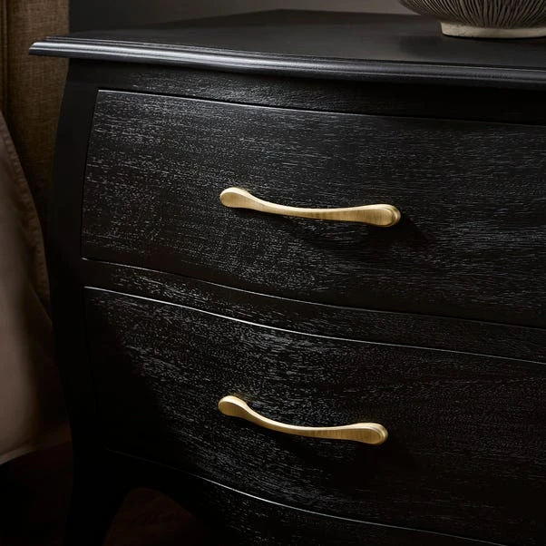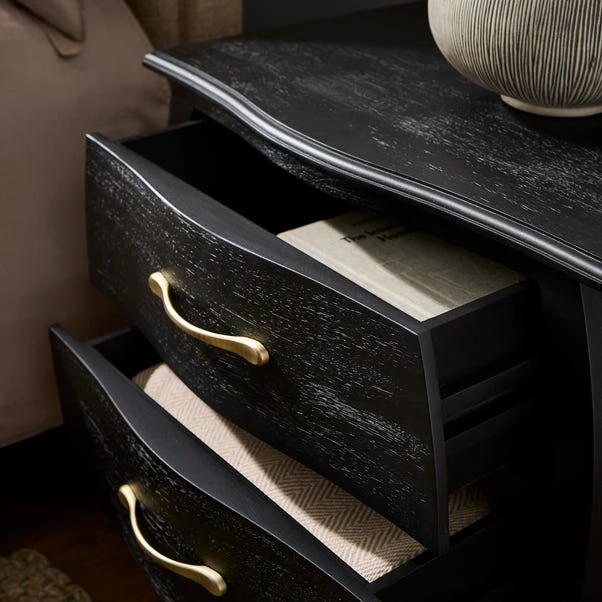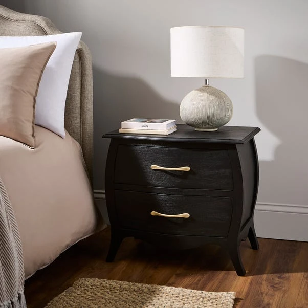 This bedside table features a sleek and sophisticated design, with the rich texture and deep hue of the black mango wood adding a contemporary flair to your decor. It comes with two spacious drawers, providing ample storage for your nighttime essentials, from books to personal items.