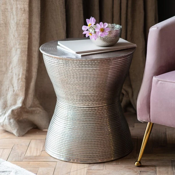 Metal occasional table with a handmade quality. Perfect for adding the finishing touch to your living space. Finished in antique silver, this hand finished side table is a beautifully artisanal finishing touch.