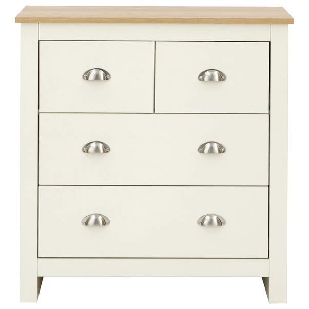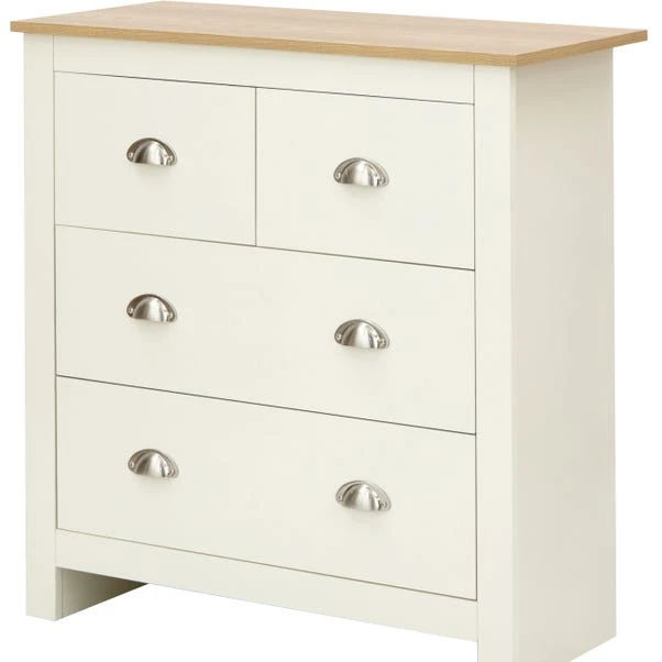 The Lancaster Chest of Drawers boasts a stylish shaker-inspired design that’s perfect for kitting out a bedroom in first-class style. The sleek lines, soft foiled finish with oak-effect tops and brushed steel handles create a sophisticated impression. The bedside table provides effective storage with two small drawers and two large drawers, perfect for adding a touch of elegance to your room.