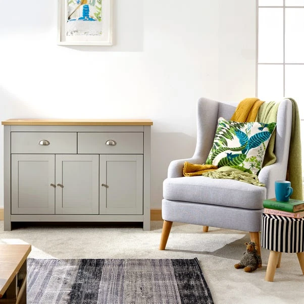 An elegant storage solution for the living or dining room, the Lancaster Large Sideboard, boasts a country cottage styling and is available in choice of matte grey or cream finishes. Complete with two spacious cupboards and two drawers, this sideboard features an oak veneered top and delicate satin silver coloured handles and knobs.