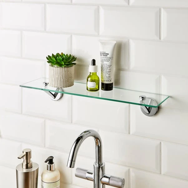 Enhance your bathroom organisation with this elegant Glass Bathroom Shelf. Crafted with sturdy metal construction, this shelf offers reliability and durability for your toiletries and decor items. Its sleek and contemporary design adds a touch of modern elegance to any bathroom decor. Complete with wall fixings, installation is hassle-free and straightforward, allowing you to enjoy your new shelf in no time.