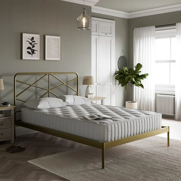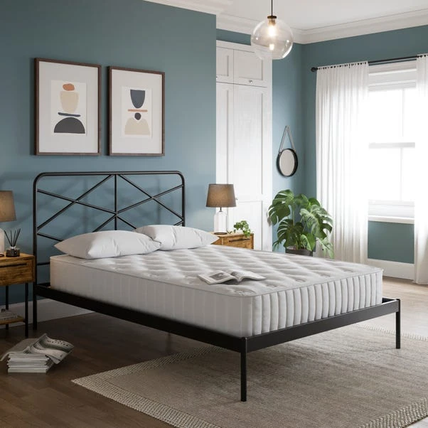 Crafted from high-quality metal, this bed frame features an elegant design with intricate detailing that adds a touch of sophistication to your space. The sturdy metal construction ensures long-lasting support and stability, while the timeless design complements a variety of decor styles, from classic to contemporary.