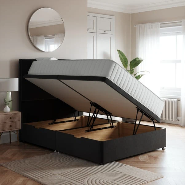 Constructed from high quality timber, this ottoman divan bed base provides excellent support for all types of mattresses. Upholstered in a range of high quality fabric colours, you can be sure you can find one to coordinate with your bedroom. This divan base is the ultimate style and storage solution for any bedroom.
