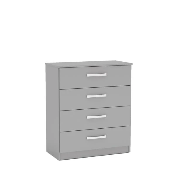 Modern and sleek, this Lynx four drawer chest combines a high-gloss finish with bold silver detailing to make any space feel contemporary. Constructed from MDP, this high-quality chest of drawers is incredibly sturdy. The top panel of this chest can support up to 8 kg of weight and each drawer can support up to 5 kg.
