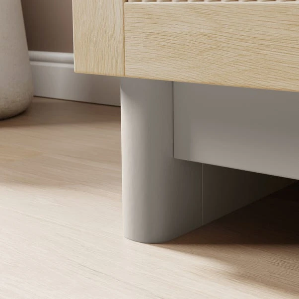 This solidly built wardrobe offers ample storage space with its two doors, perfect for organising your clothes and accessories. The elegant gold handles add a touch of sophistication, complementing the light oak effect finish beautifully. Designed to blend seamlessly with various interior styles, this wardrobe not only provides functional storage but also elevates the overall look of your bedroom.
