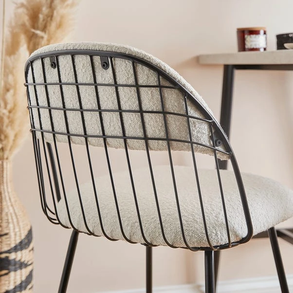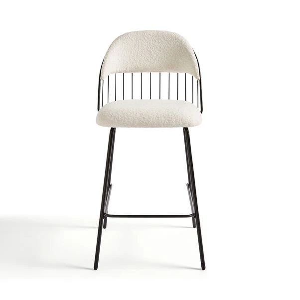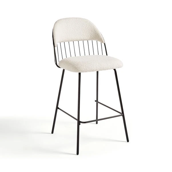 Crafted with foam-filled cushions, this bar stool provides exceptional comfort, allowing you to unwind and enjoy your drinks or meals in absolute relaxation. The soft upholstered ivory boucle fabric exudes elegance and adds a touch of texture to your space. The curved back seat not only enhances the chair’s aesthetic appeal but also provides excellent back support. With its sturdy metal legs, this bar stool offers stability and durability, ensuring it remains a timeless addition to your home bar or kitchen counter.