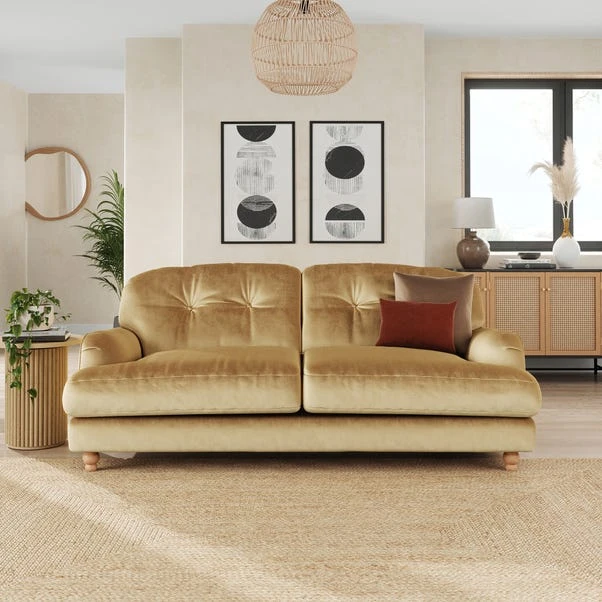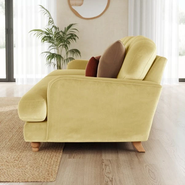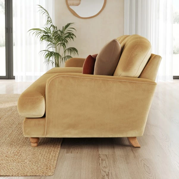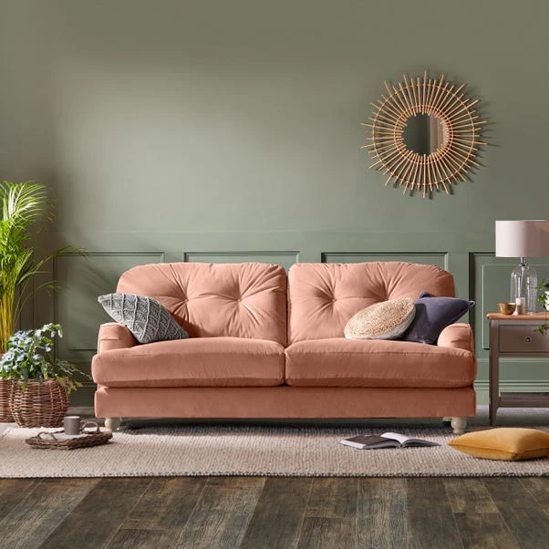 The Martha Vintage Velvet 3 Seater Sofa is a stunning, retro inspired sofa that is a welcome addition into any home.Upholstered in a soft touch, vintage effect velvet fabric and finished with turned, wooden legs, this sofa adds a nostalgic feel to any room, while the contemporary colourways ensures this piece stays stylish for years on end.