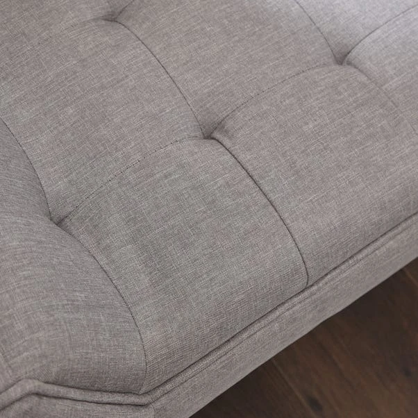 This unique bench is perfect for any modern households that are looking to add life into their home. Featuring a buttoned seat, solid wood scandi legs and a beautiful fabric finish this is a must have product!