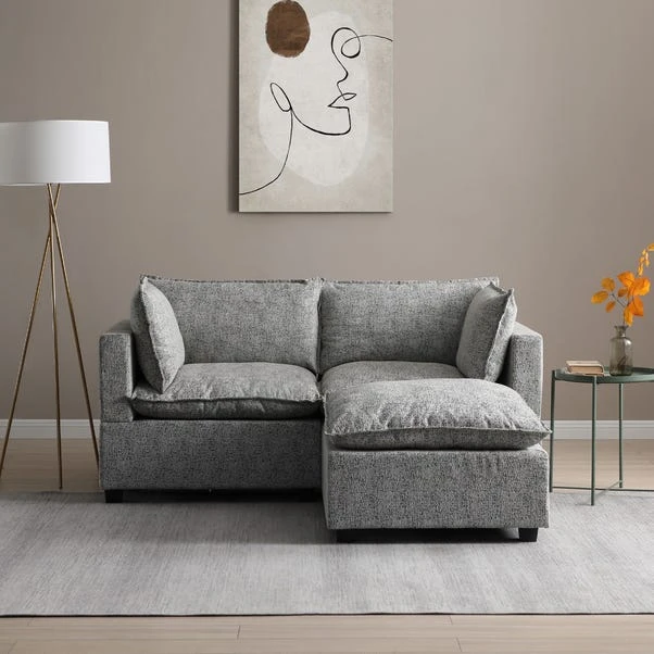 Moda 2 Seater Modular Sofa With Chaise, Light Grey Boucle