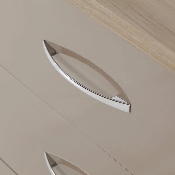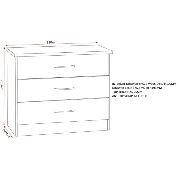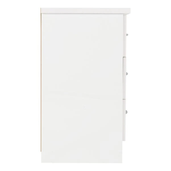 The Nevada 3 Drawer Chest features a contemporary design owing to the gloss finished front which contrasts perfectly with the light oak veneers. The Nevada has your storage needs covered thanks to the ample drawer space which sits on sturdy metal runners.