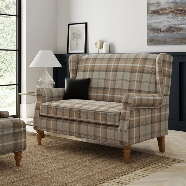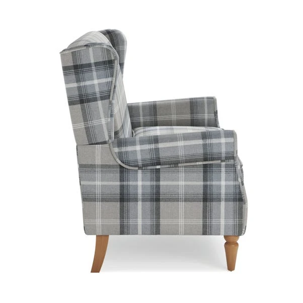 The perfect sofa to complement our existing Oswald range. This timeless piece is designed with comfort in mind, upholstered in a checked, soft touch faux wool fabric, complete with a pocket sprung seat, fibre wrapped foam cushion and a foam-filled backrest for optimal support. With a traditional wingback design, this part assembly sofa features scrolled arms, piped edged detailing and natural finished solid wood legs.