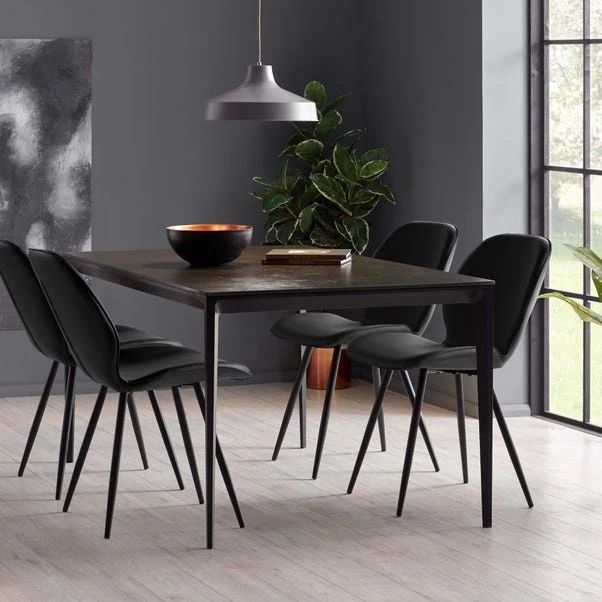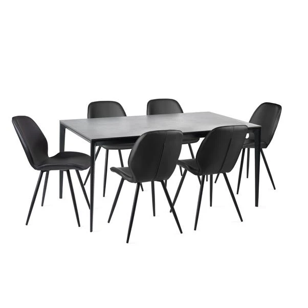 Comfort and style come together with the Otto dining chair. The soft grey fabric, foam-padded seat, and slanted backrest provide a supportive sit, while the slim black metal legs offer strength and stability. Perfect for modern dining spaces, these chairs are easy to assemble.