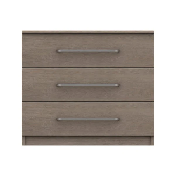 The Parker 3 Drawer chest offers a contemporary design that would suit a wide range of décor styles. This stunning chest of drawers is supplied fully assembled and features linen look drawer insides and soft radius metal effect handles. Complete with three large drawers with 8mm heavy duty bases and easy glide metal runners, this chest would make a practical addition to any home.